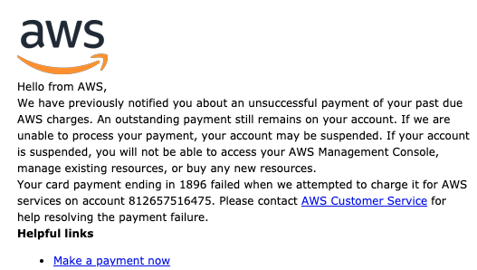 다행히도(?) 등록해놨던 카드가 만료되어서 요금은 나가지 않고.. 비용이 연체되었으니 어서 내라는… 메일이 왔다.